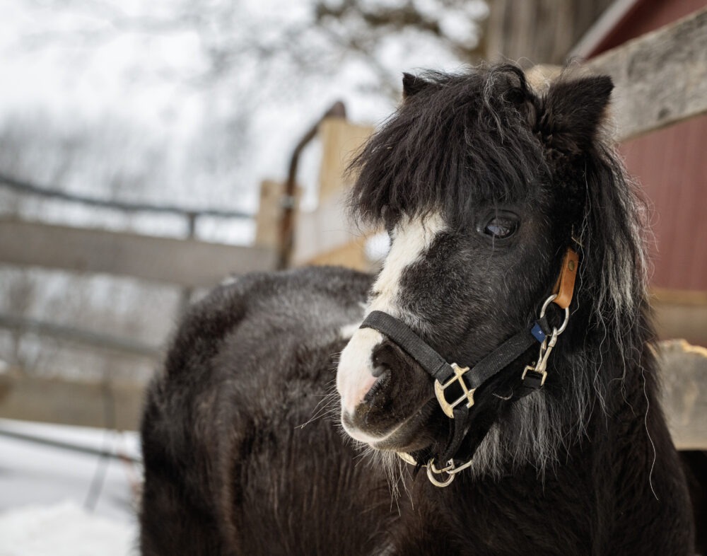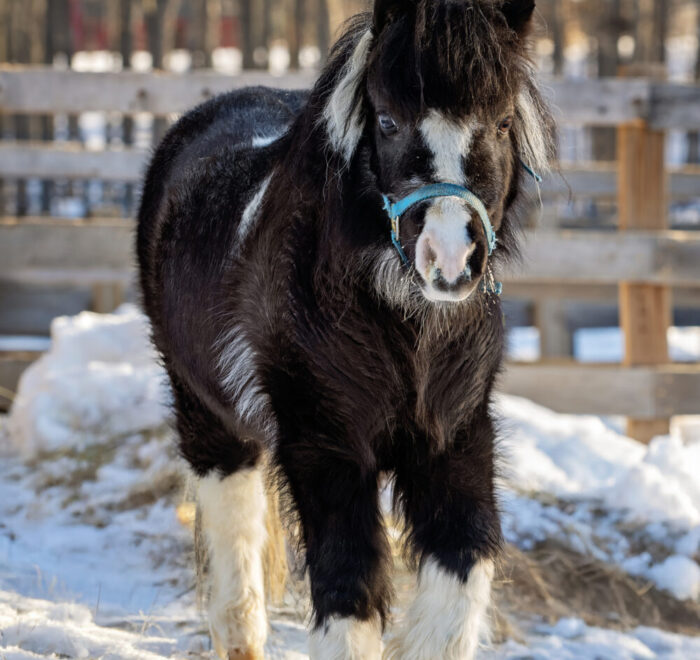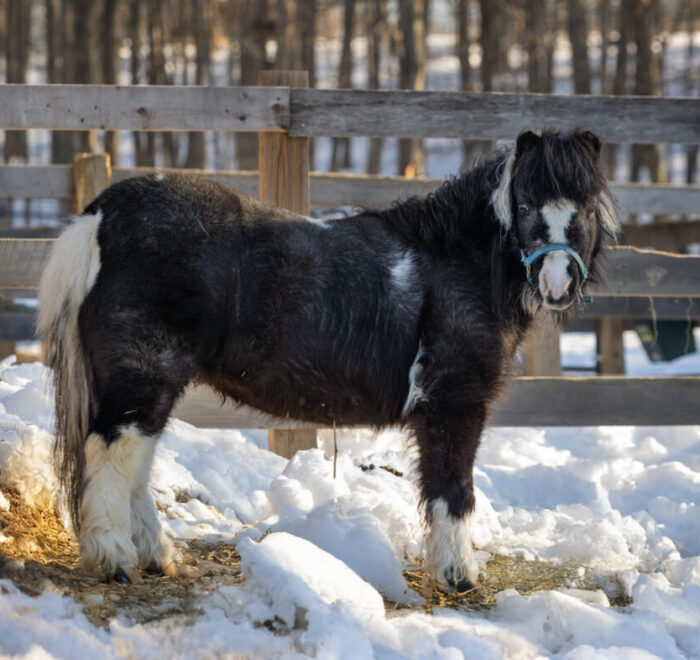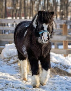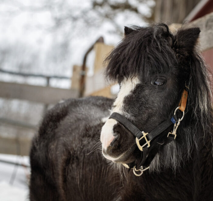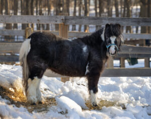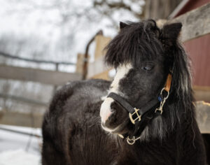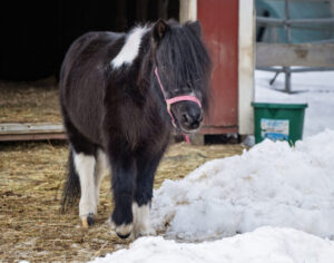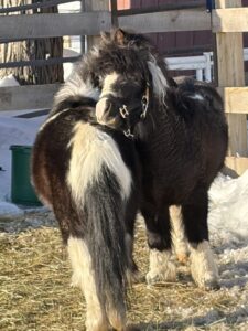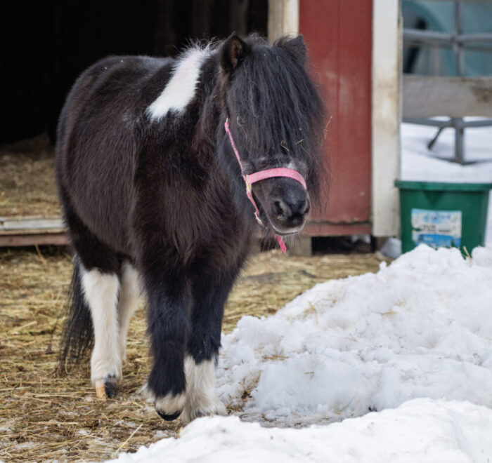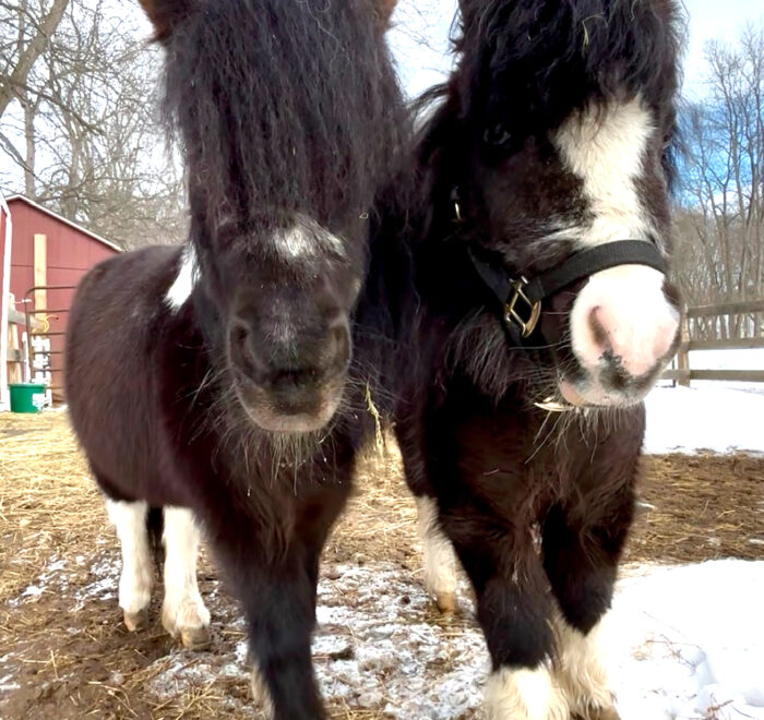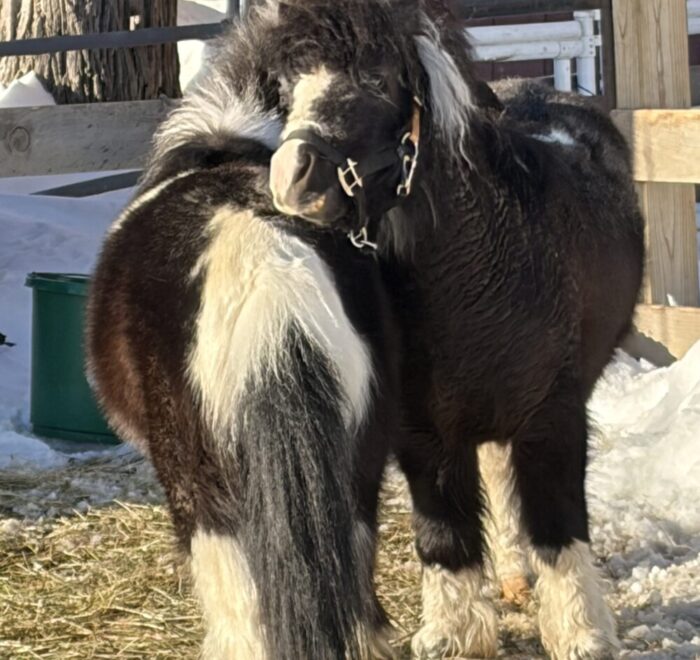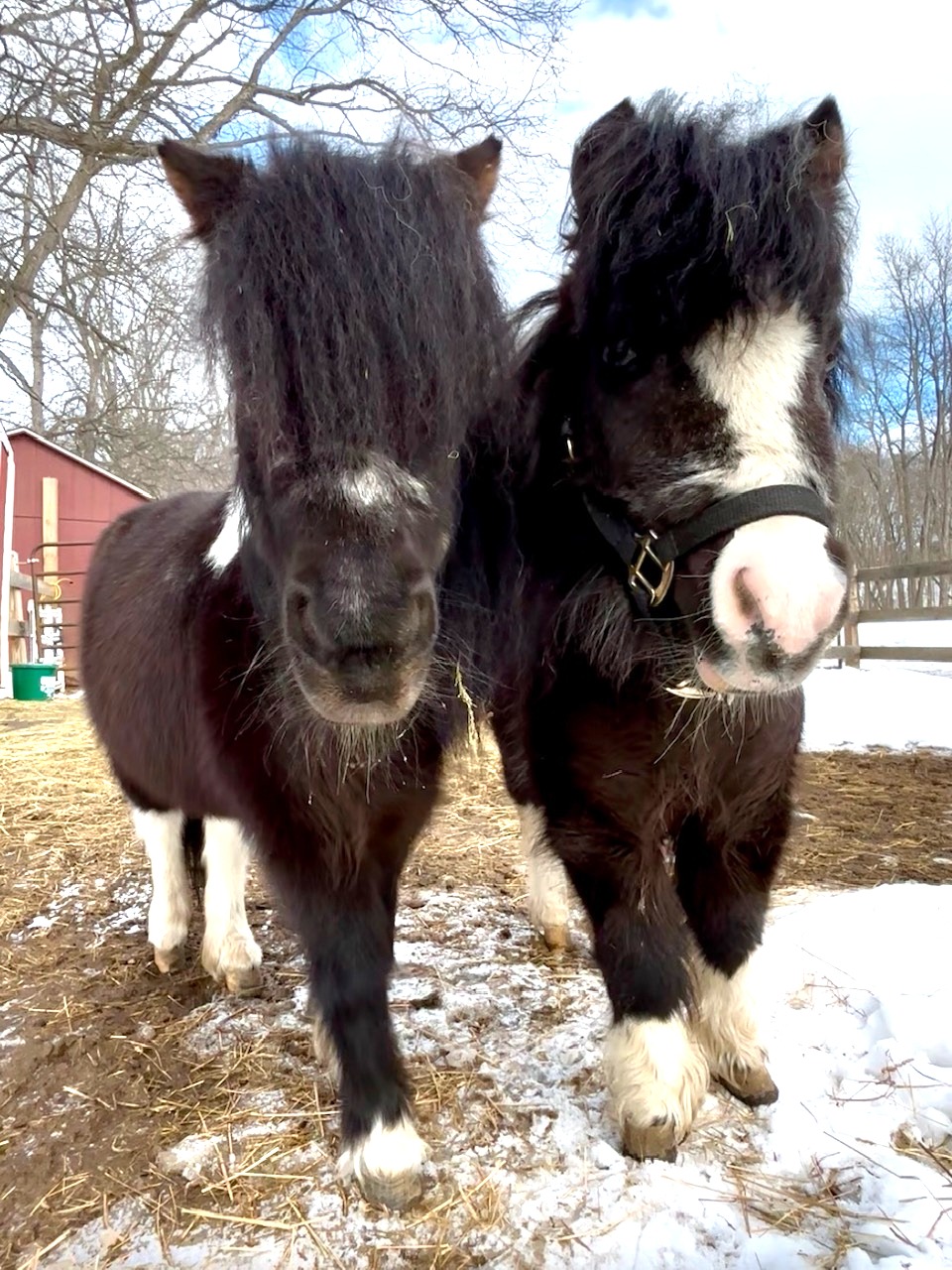 Silkie is an 18yo American Mini Horse mare and Spirit is her 12yo gelding son. (Silkie has the white nose.) They arrived at NEER North with Silkie’s other son, Amigo. All three had lived most of their lives on the same property, so the transition to a new environment has been a big change. Thankfully, they are settling in great and adjusting more each day.