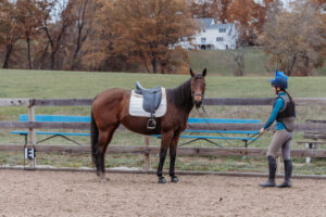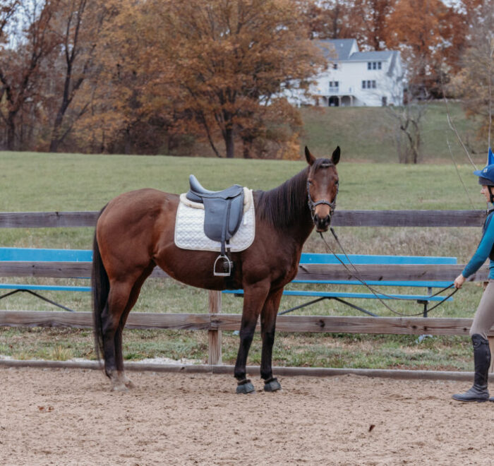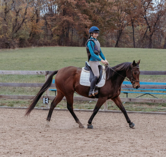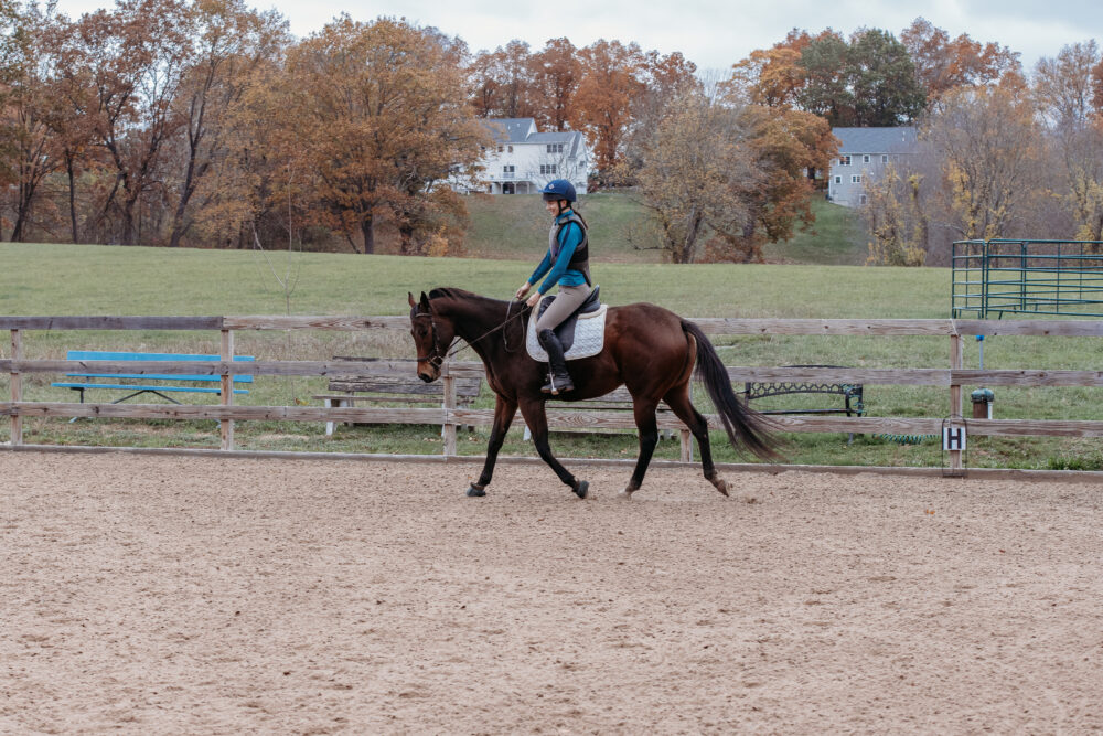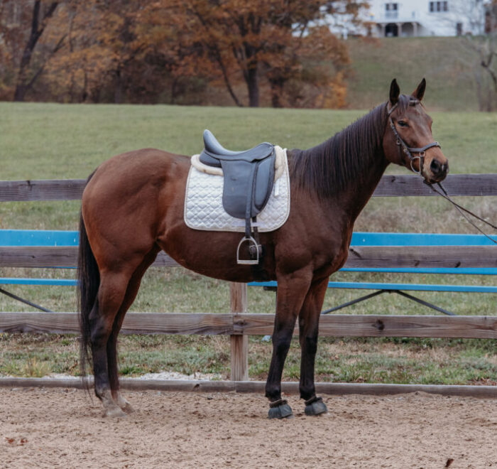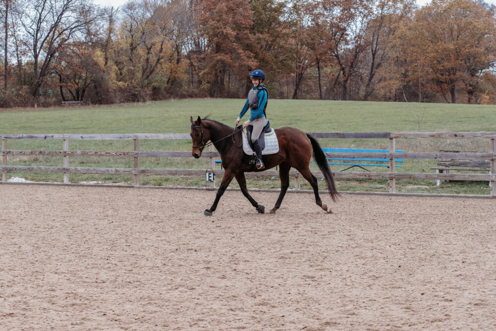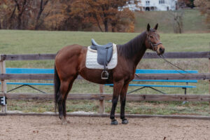 Stella is a 6 year old Off Track Thoroughbred, who had a brief racing career in Florida, then went directly to a private owner. Stella was restarted in the fall of last year with her previous owner, and was going WTC and doing crossrails. She had the winter off, and has been slowly restarted since then.