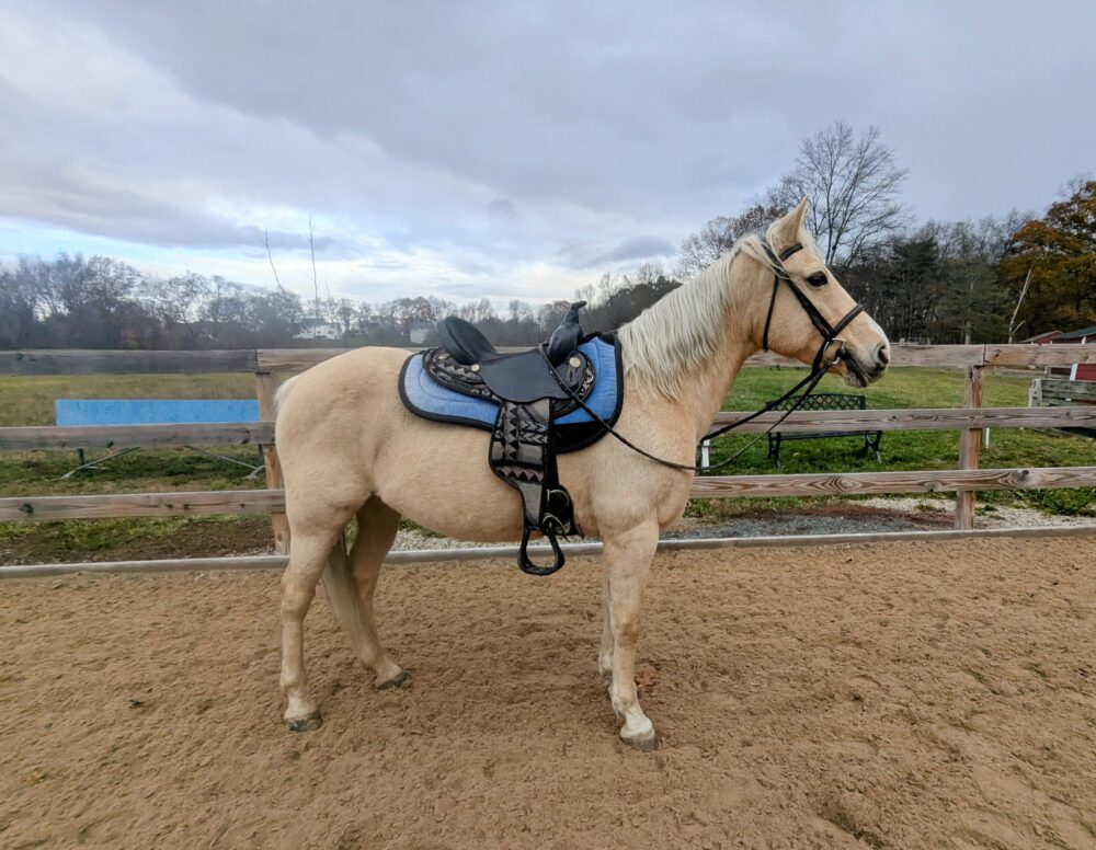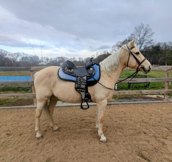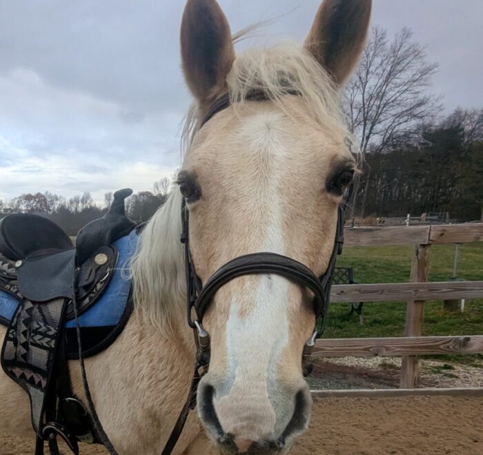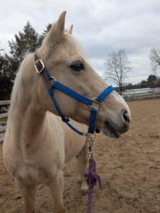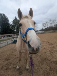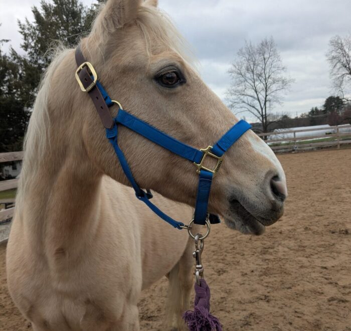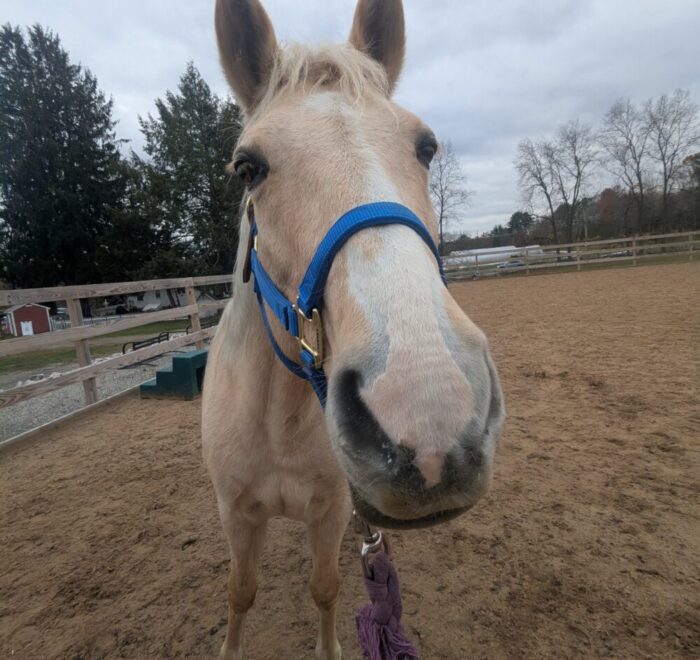 Summer is a gorgeous 20-year-old, 14.1 hh Palomino mare. She’s very people-oriented and really seems to connect on a deeper level. She may excel at groundwork or liberty training—she’s willing, smart, and very in tune with whoever is working with her. She might also be a great fit for an unmounted therapeutic setting; she’s the type who reflects people’s emotions and tends to draw a lot out of them just by being present.
